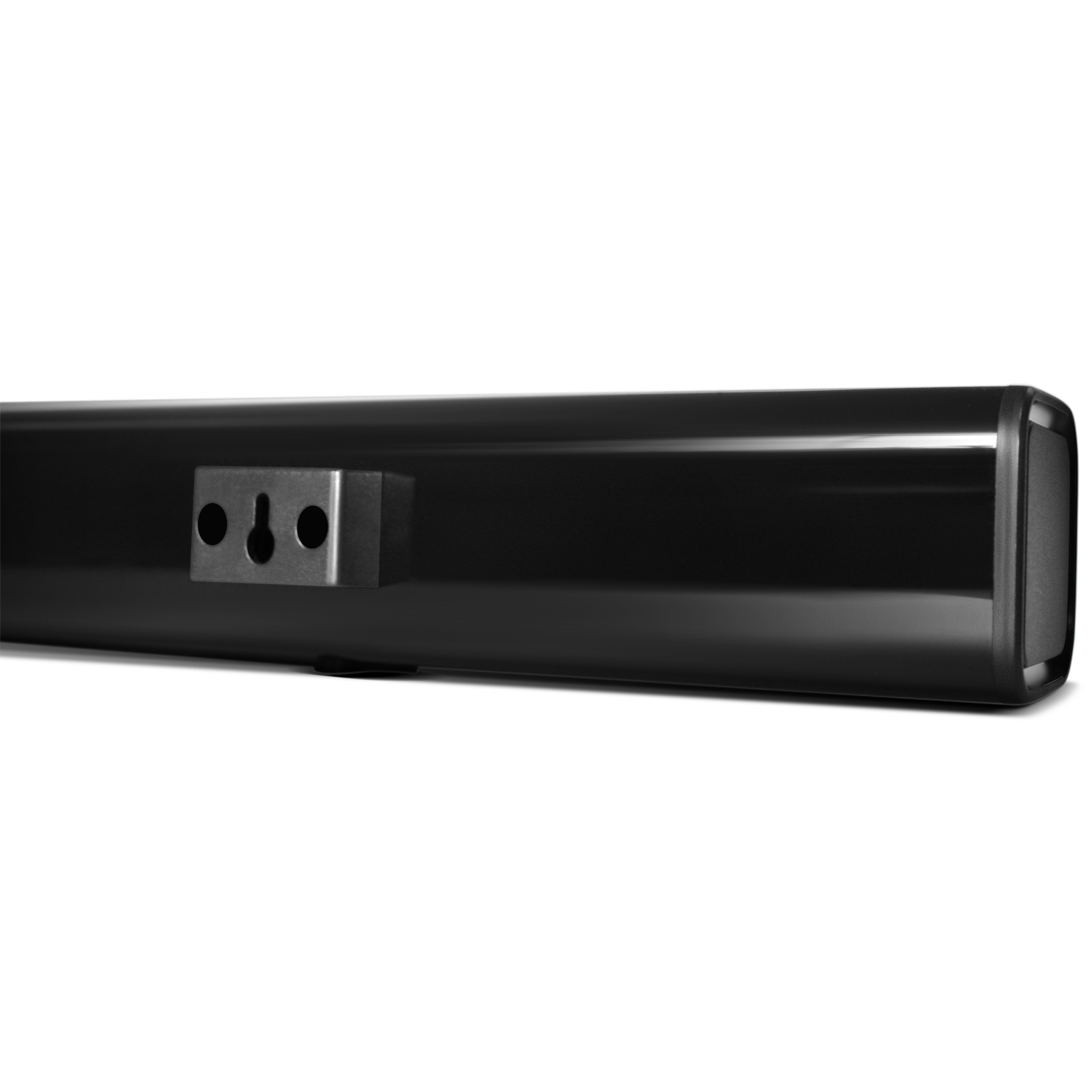 Это действительно компактное устройство, его размеры — 762×62×80 мм. Саундбар можно положить на тумбу под телевизором или разместить на стене — для этого предусмотрены соответствующие крепления. При этом его мощность составляет 40 Вт, а благодаря крупным динамикам диаметром 47 мм и пассивным излучателям частотный диапазон простирается от 80 до 20 000 Гц.