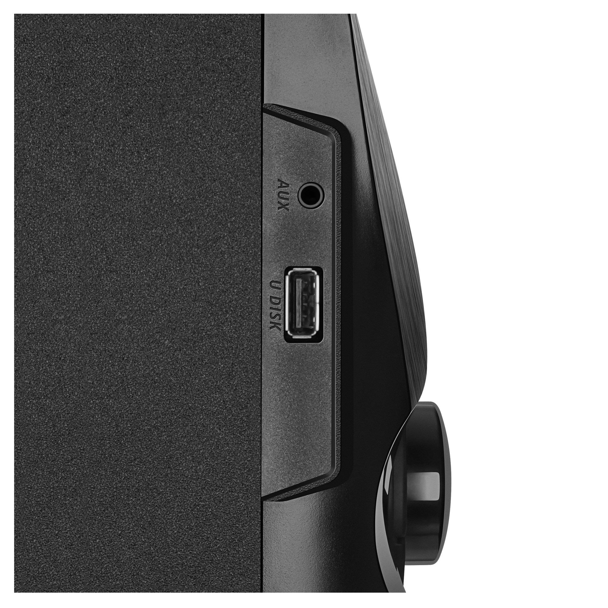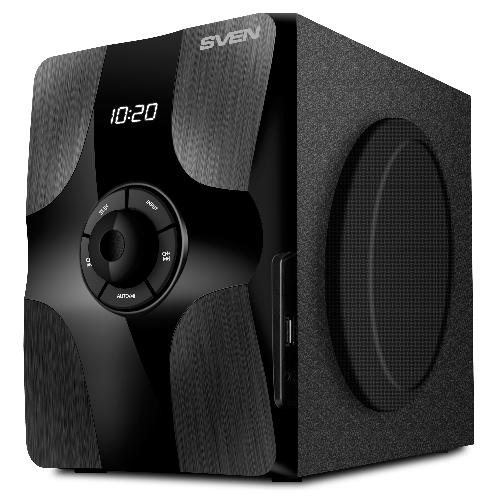 Управлять системой можно не только через переднюю панель, но и с помощью дистанционного пульта — вставать с любимого дивана или кресла не придется. Подключение к источнику звука возможно двумя способами: к ПК будет удобнее подключиться кабелем через разъем AUX, а для мобильных гаджетов использовать Bluetooth — такая опция тоже предусмотрена. Подборку самых любимых треков можно записать на USB-накопитель и воспроизводить с помощью встроенного в SVEN MS-315 плеера, а если захотелось новостей и свежих релизов от любимых исполнителей — самое время воспользоваться FM-приемником.