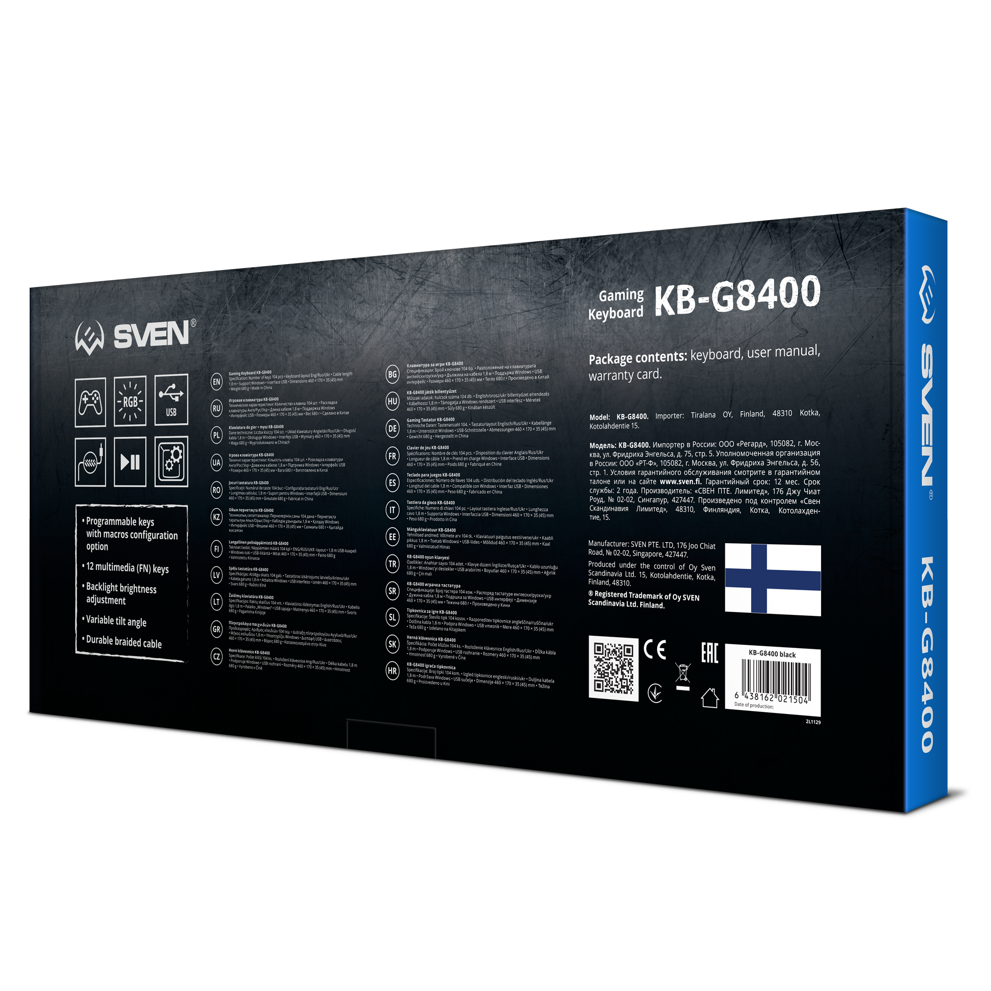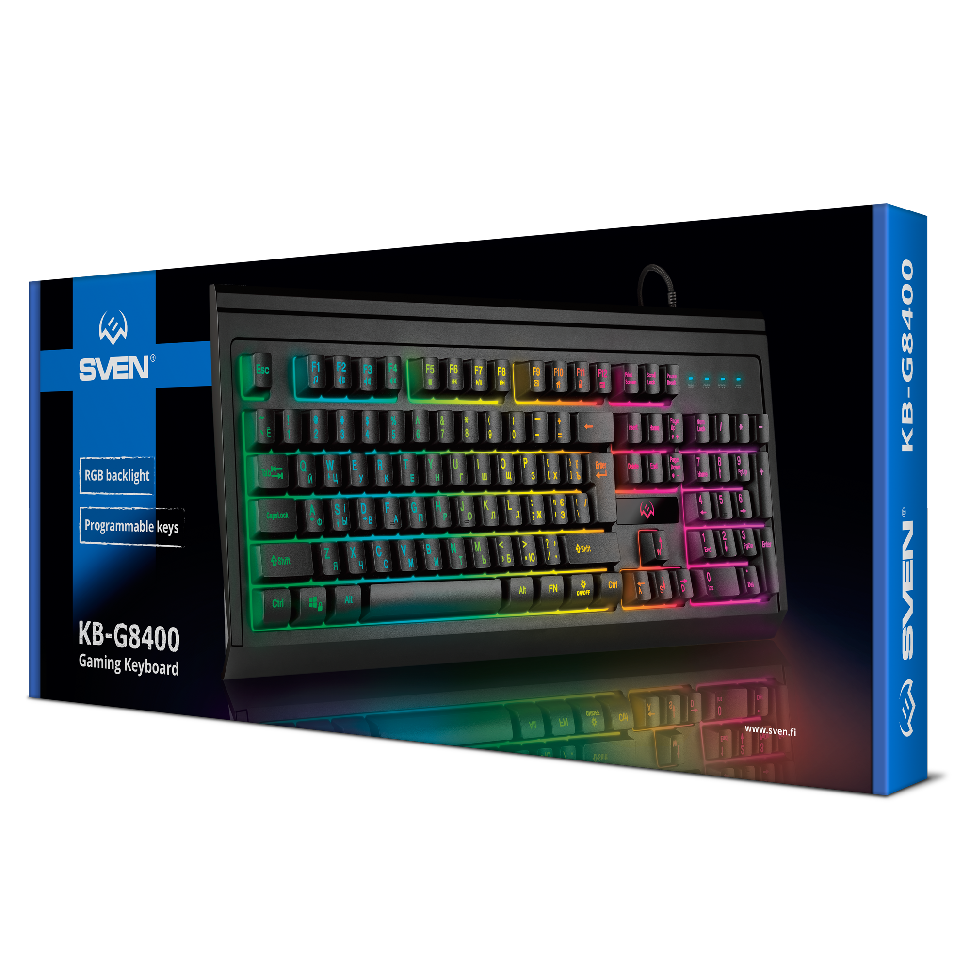 Настоящая игровая клавиатура — это всегда сочетание яркого дизайна, эффектной подсветки, надежности и высочайшего уровня комфорта использования. В SVEN KB-G8400 разработчики заложили все эти качества, создав один из самых интересных и при этом доступных продуктов в развиваемой уже много лет линейке. Дизайн привлекает взгляд изяществом форм, а завершает образ настраиваемая RGB-подсветка. Модель будет отлично смотреться в игровом или рабочем пространстве и поможет как сосредоточиться на выполняемых задачах, так и глубже погрузиться в игровую атмосферу.