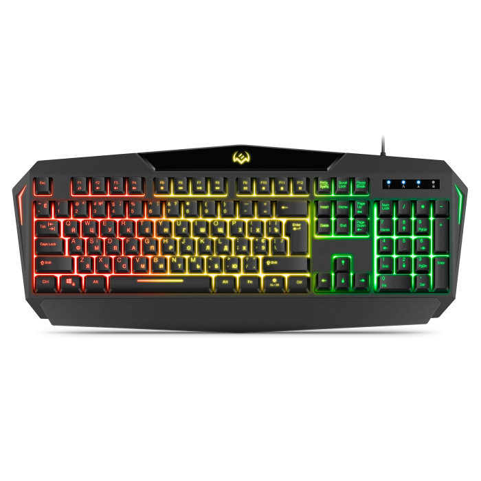 Входящая в состав комплекта клавиатура оснащена функцией Antighost, которая сводит на нет опасность «фантомных» нажатий клавиш. Дополнительное удобство обеспечивают 12 дополнительных мультимедийных функций, которые активируются при нажатии кнопки Fn. Вместе с клавиатурой поставляется 8 сменных колпачков для клавиш. Как и во всех игровых устройствах от SVEN, немало внимания при разработке комплекта уделено дизайну — «агрессивный» внешний вид устройств не оставляет сомнений в их игровой родословной. А завершает картину настраиваемая подсветка клавиатуры и мыши с тремя режимами работы.