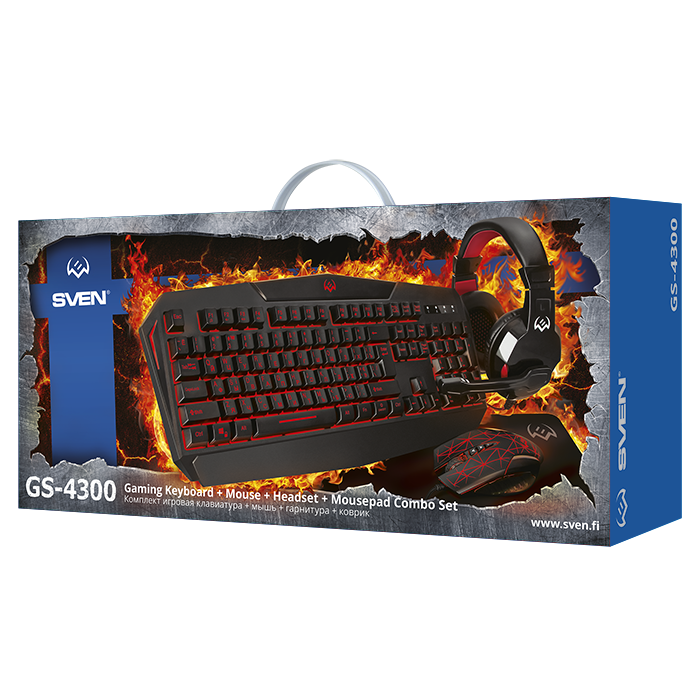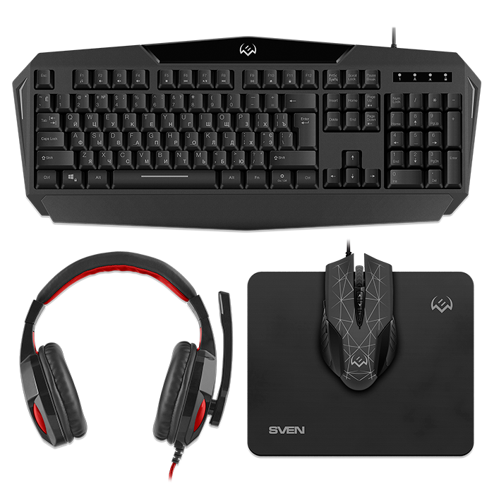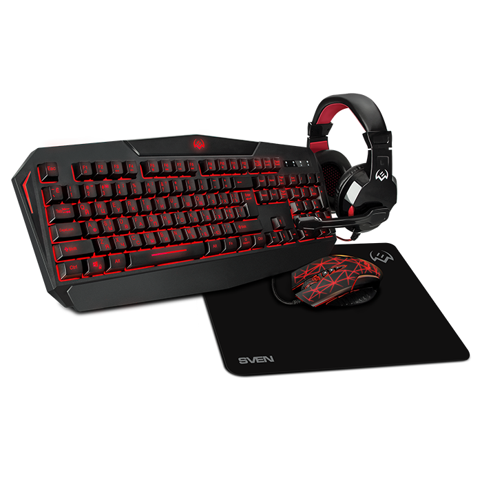 Качественная периферия для геймера — это путь к полному погружению в атмосферу игры и залог превосходства над соперниками. Компания SVEN собрала в одном комплекте лучшие «орудия» для увлеченных игроков: клавиатуру, гарнитуру, мышь и коврик.