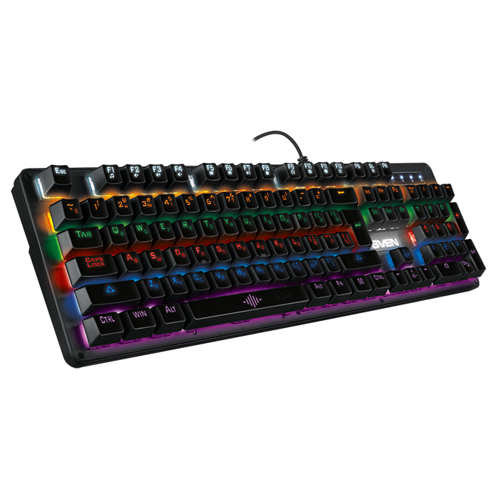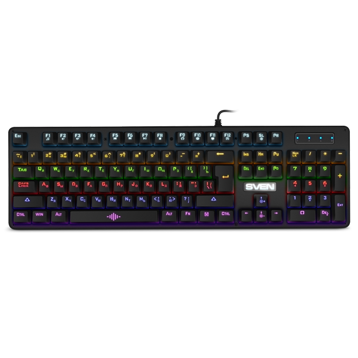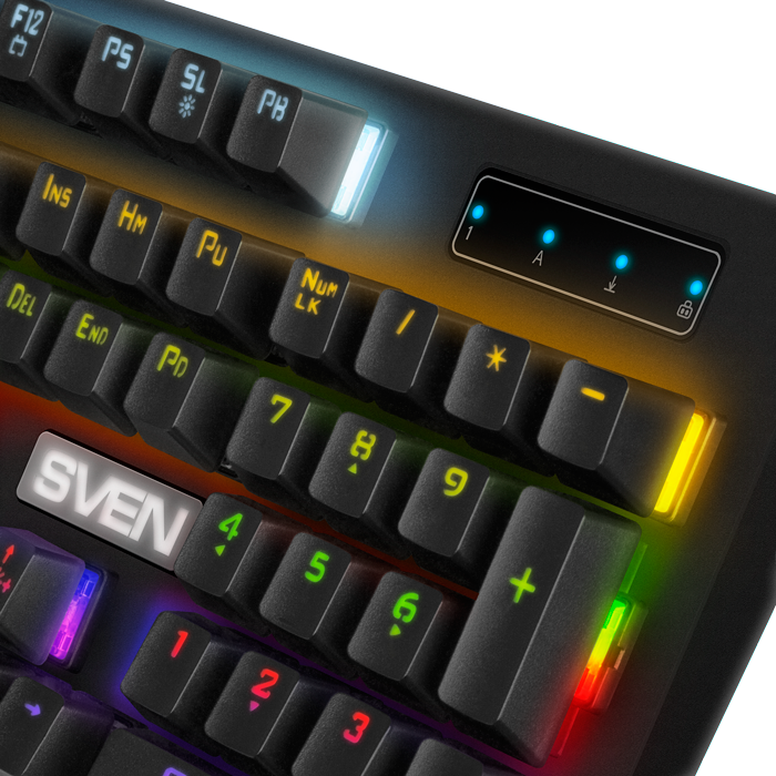 Внешний вид SVEN KB-G9100 соответствует наполнению: выглядит она невероятно стильно, еще более эффектной ее делает разноцветная подсветка с 7 режимами работы и регулировкой яркости. Особый акцент сделан на эргономику, удобство использования и надежность — каждая деталь клавиатуры продумана и призвана подарить геймеру максимум позитивных эмоций и новых возможностей в игровых баталиях. Разработчики SVEN подумали буквально обо всем — в комплекте даже есть ключ для снятия колпачков клавиш, который непременно пригодится при обслуживании и чистке клавиатуры.