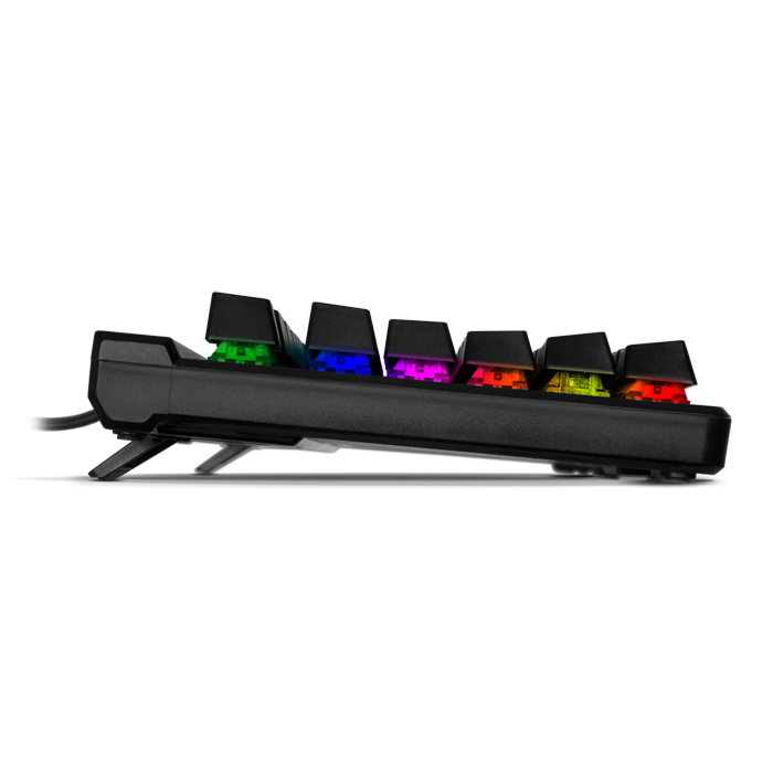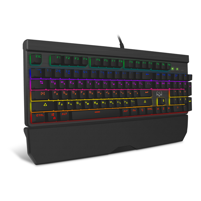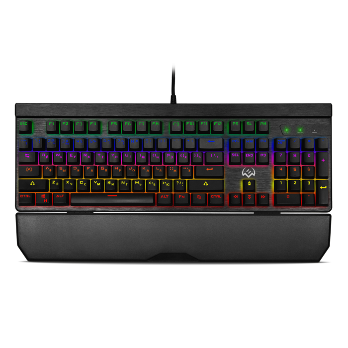 Максимальной эффективности действий помогут добиться настраиваемые клавиши, а полное погружение в игровую атмосферу обеспечит разноцветная подсветка. С помощью ПО, которое можно скачать с сайта производителя, можно запрограммировать каждую клавишу, расширив её функционал на своё усмотрение. Конечно же, не забыли разработчики и о таком важном для киберспортсменов параметре, как комфорт долговременного использования клавиатуры. Съемная подставка под запястья даст возможность оставаться в форме даже после многочасовых игровых сессий, а функция отключения клавиши Win спасет от неприятных неожиданностей.